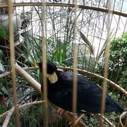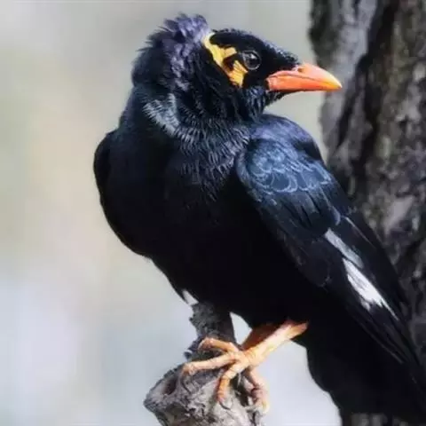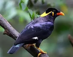 金冠树八哥为椋鸟科树八哥属的鸟类。体长约23厘米,闪辉黑色。特征为具翼斑及颏黄色,脸颊裸露皮肤粉黄色。…