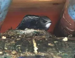 4-6月繁殖,往往集群营巢,巢营在村内尾檐下,峭壁裂隙、塔内以及天然的树洞中。巢以稻草、树叶、草根、芦苇、羽毛等编成。每年繁殖一次,每产4-7枚卵,卵色变化很大,呈乳黄色、翠绿或纯浅绿蓝色。孵卵期12天,亲鸟每天育雏95-328次,且有时一次衔数条虫返巢育雏。