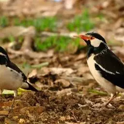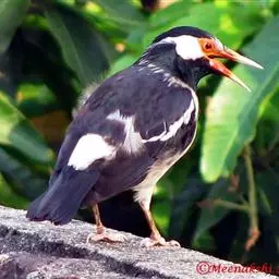 斑椋鸟:是中等体型的黑白色椋鸟,体长24厘米。头顶、头侧、翼斑、腰及腹部白色,喉、胸及上体余部黑色,…