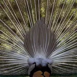 白孔雀,脊椎动物,鸟纲,雉科。其全身洁白无瑕,羽毛无杂色,…