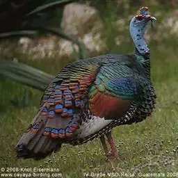 眼斑吐绶鸡:是火鸡科的两种鸟类之一。体型比普通火鸡略小些,体长1米左右,体重2.4-5.4千克,…