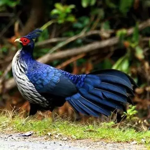 黑尾原鸡:雄鸟体型较大,体羽艳丽且金属光泽;脸部裸皮、有红色肉冠及肉垂,大而显著;中央两枚尾羽延长…