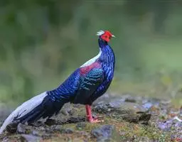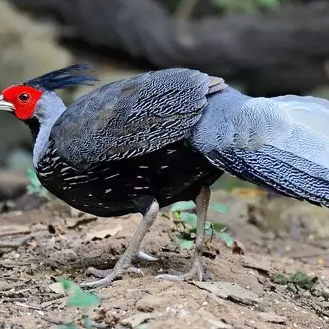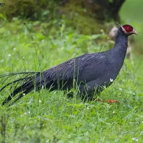 黑长尾雉大型鸡类,体长53~88厘米。雄较雌大。雄鸟通体紫蓝色,脸鲜红色,翅上有一条显著的白色翅斑…