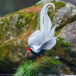 白鹇,是鸡形目雉科鹇属的一种留鸟。雄鸟上体白色并具黑色纹,下体黑色,头顶具黑色长羽冠,…