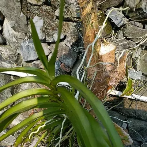 大叶隔距兰 Garay):茎直立,粗壮,长5-20厘米,连同叶鞘粗2-2.5厘米,具分枝、长而粗壮…