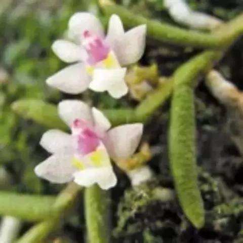 红花隔距兰 Garay):植株通常悬垂。茎细圆柱形,长达70厘米,粗3-4毫米,分枝或不分枝,…