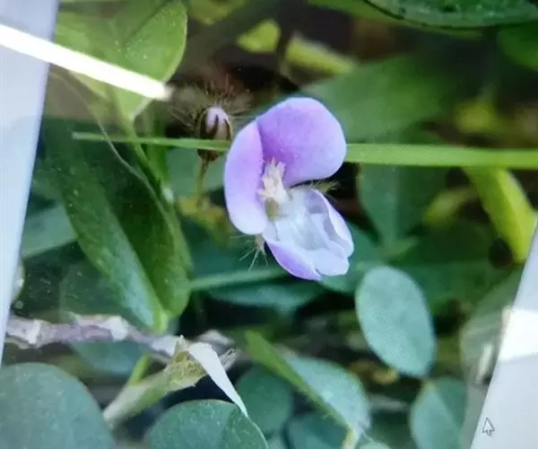 总状花序顶生或腋生,被黄褐色开展柔毛;有花6-10朵,花小,长约5毫米;苞片卵形,被黄褐色柔毛;花梗长5-8毫米,纤细,略被短柔毛;花萼长4毫米,5深裂,密被黄褐色长柔毛,裂片线状披针形,较萼筒长3-4倍;花冠粉红色,与花萼近等长,旗瓣倒卵形或倒卵状圆形,中部以下渐狭。具短瓣柄,翼瓣倒卵形,具耳和瓣柄,龙骨瓣长椭圆形,较翼瓣长,弯曲;雄蕊二体,长约5毫米;子房线形,被毛。