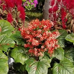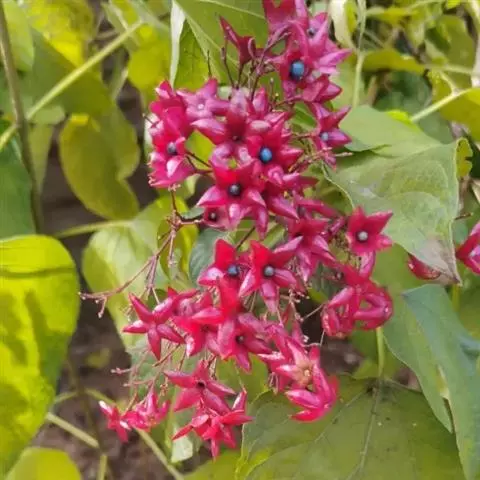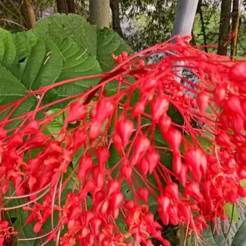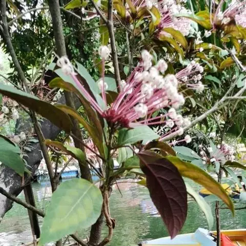 烟火树 Merr.)是唇形科、大青属常绿灌木或小乔木,株高可达4米。幼枝方形,墨绿色。叶对生,…