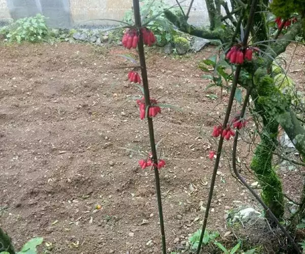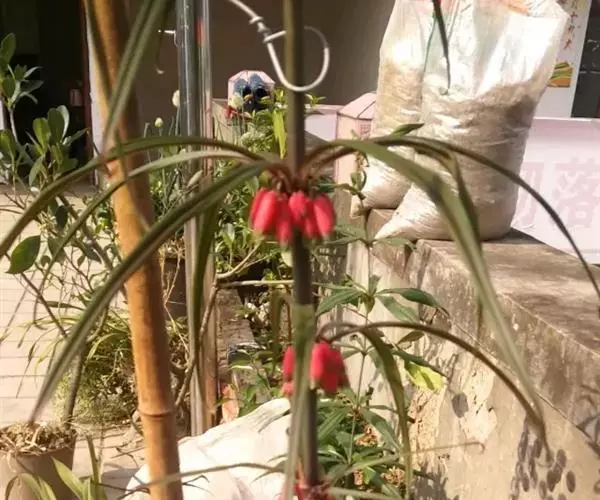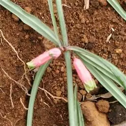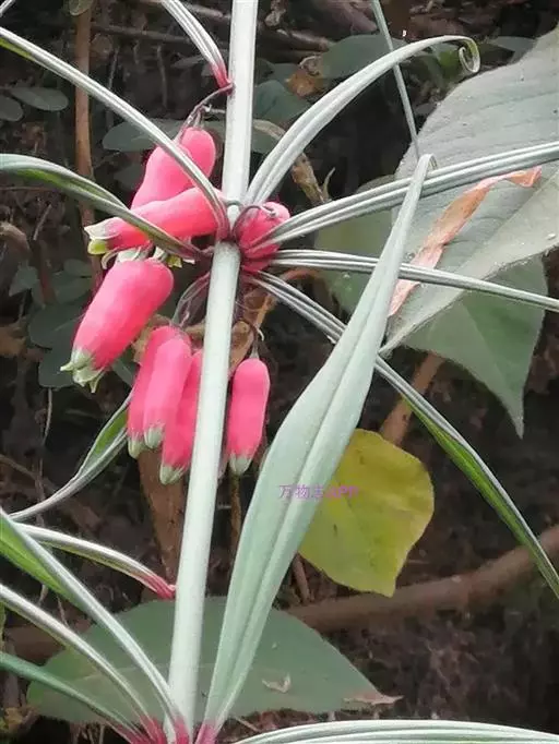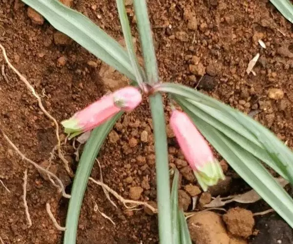 花序具(1-)2-4(-6)花,总花梗下垂,长1-2厘米,花梗长0.5-1.5厘米,苞片膜质,微小,通常位于花梗下部;花被粉红色,长18-25毫米,裂片长3-5毫米;花丝长3-5毫米,丝状或两侧扁,花药长4-6毫米;子房长4-6毫米,花柱长(8-)10-14毫米。