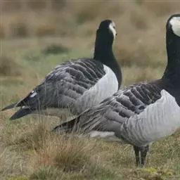 黑雁是雁形目鸭科黑雁属鸟类,又称黑鹅。头、颈、胸、嘴及脚黑褐色;虹膜褐色;背及两翼灰褐色;尾下覆羽白色;胸侧及胁部多近白色纹;颈部两侧各具一个特征性白色横纹,在颈前后断开,未能联成颈环。幼鸟颈部无白斑,而翅上多白色横纹。黑雁繁殖于北美洲、西伯利亚极地的苔原冻土带,越冬于南方沿海的草地及河口。在中国安徽也能见其身影。主要栖息在海湾、海港及河口等地,在冬季里大多出现在有耐碱植物生长的湖泊和水库周围,也出现在周围地势低洼的咸水湖和沿海地区,偶尔还出现在农田地里。性活跃,喜集群,常成群活动和栖息。主要以植物性食物为食。繁殖期在6-8月,雌鸟孵卵,雄鸟通常在距巢100米以内范围内守候警诫。雌鸟孵卵时常将头和颈朝地面平伸出去以降低高度。孵化期为22-28天。黑雁被列入中国林业局2000年8月1日发布的《国家保护的有益的或者有重要经济、科学研究价值的陆生野生动物名