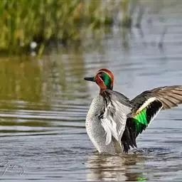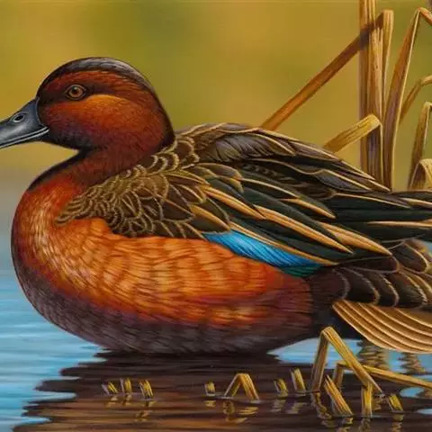 绿翅鸭是小型鸭类,体长37厘米,体重约0.5千克。嘴脚均为黑色。雄鸟头至颈部深栗色,…