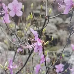 兴安杜鹃是杜鹃花科、杜鹃花属半常绿灌木,高可达2米,分枝多。叶片近革质,椭圆形或长圆形,…