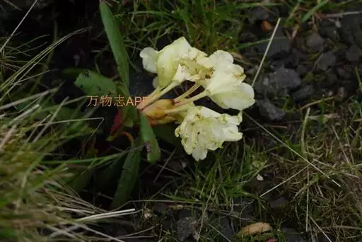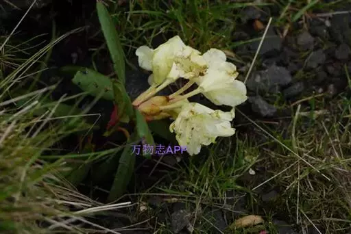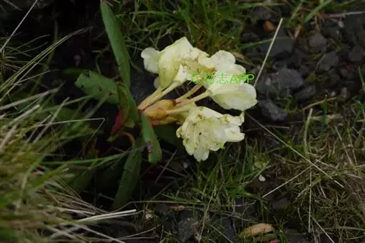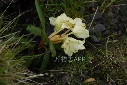 牛皮杜鹃(学名:Rhododendron aureum Georgi):常绿矮小灌木,高10-50厘米。茎横生,侧枝斜升,具宿存的芽鳞。叶革质,常4-5枚集生于小枝顶端,倒披针形或倒卵状长圆形,上面暗绿色,下面淡绿色。顶生伞房花序,有花5-8朵;花冠钟形,长2.5-3厘米,淡黄色,5裂,裂片近于圆形,稍不等大,上方一片具红色斑点。蒴果长圆柱形。花期5-6月,果期7-9月。
