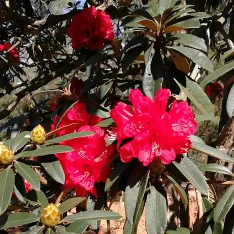 猴头杜鹃,为常绿灌木,杜鹃花科,高约2-5米,稀达10-13米;幼枝树皮光滑,淡棕色,老枝树皮有层…