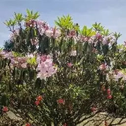 云锦杜鹃是杜鹃花科杜鹃属常绿灌木或小乔木;株高达12米;枝小枝粗,黄绿色,初具腺体;叶叶厚革质,…