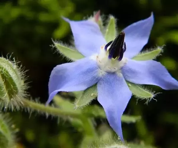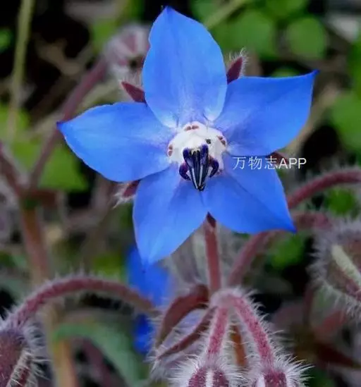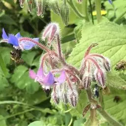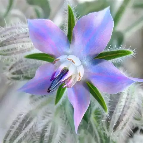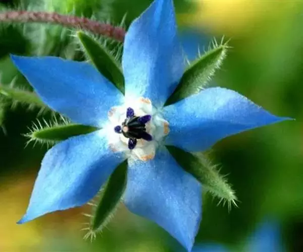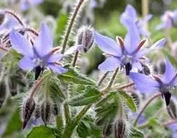 琉璃苣(学名:Borago officinalis Linn.)是紫草科琉璃苣属植物,一年生草本芳香植物。全株密生粗毛,株高60-100厘米。茎直中空有棱,近圆形。单叶互生,卵形。聚伞花序,深蓝色,有黄瓜香味,花冠5瓣,雌雄同花,雄蕊鲜黄色,5枚。每花有种子1-4粒,种子黑色,长圆形小坚果。