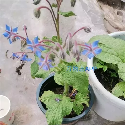 一年生草本芳香植物。全株密生粗毛,株高60-100厘米。茎直中空有棱,近圆形。单叶互生,卵形,叶长12-20厘米,宽2-12厘米。聚伞花序,深蓝色,有黄瓜香味,花冠5瓣,雌雄同花,雄蕊鲜黄色,5枚。每花有种子1-4粒,种子黑色,长圆形小坚果。 琉璃苣