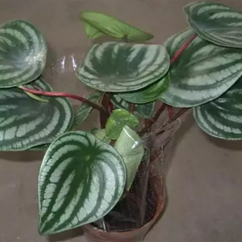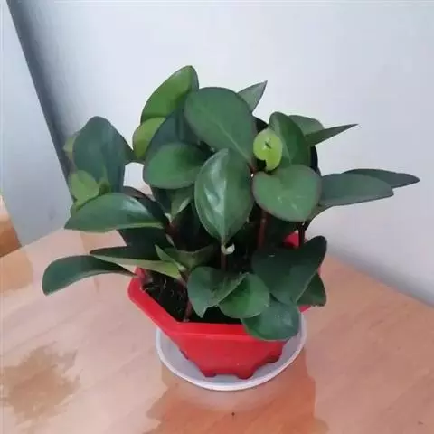 多年生草本,又名椒草、圆叶椒草。原产巴西 ,常见栽培的品种有它的变种花叶椒草。又称荷叶碧玉,荷叶椒草为多年生常绿草本,株高15-20厘米。无主茎。叶簇生,近肉质较肥厚,倒卵形,灰绿色杂以深绿色脉纹。