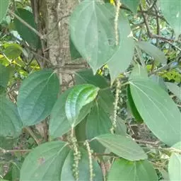 穗状花序,灰白色。栽培种有斑叶型,其叶肉质有红晕;花叶型,其叶中部绿色,边缘为一阔金黄色镶边;亮叶型,叶心形,有金属光泽。皱叶型,叶脉深深凹陷,形成多皱的叶面,极为有趣。 荷叶椒草