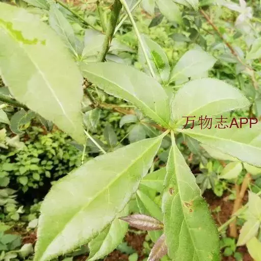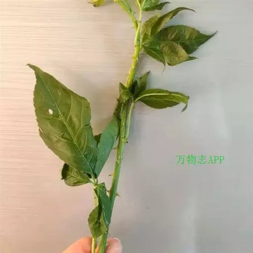 灌木,高1-6米;分枝多,一、二年生的通常密生刺,稀仅节上生刺或无刺;刺直而细长,针状,下向,基部不膨大,脱落后遗留圆形刺痕,叶有小叶5,稀3;叶柄常疏生细刺,长3-10厘米;小叶片纸质,椭圆状倒卵形或长圆形,长5-13厘米,宽3-7厘米,先端渐尖,基部阔楔形,上面粗糙,深绿色,脉上有粗毛,下面淡绿色,脉上有短柔毛,边缘有锐利重锯齿,侧脉6-7对,两面明显,网脉不明显;小叶柄长0.5-2.5厘米,有棕色短柔毛,有时有细刺。