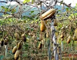 八月瓜(学名:Holboellia latifolia Wall.)是常绿木质藤本。茎与枝具明显的线纹。掌状复叶有小叶3-9片;叶柄稍纤细。花数朵组成伞房花序式的总状花序。果为不规则的长圆形或椭圆形;种子多数,倒卵形,种皮褐色。花期4-5月,果期7-9月。
