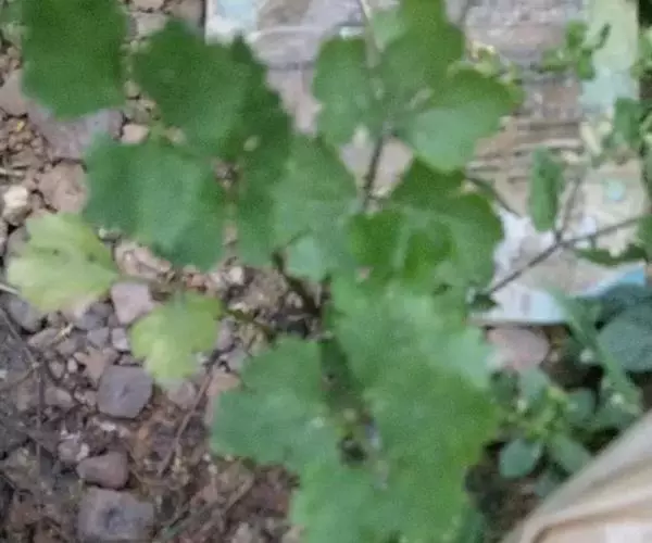 叶远生或近生;柄长5-20厘米,粗约1毫米,纤细,栗黑色,有光泽,基部被与根状茎上同样的鳞片,向上光滑,叶片卵状三角形,长10-25厘米,宽8-16厘米,尖头,基部楔形,中部以下多为二回羽状,中部以上为一回奇数羽状;羽片3-5对,互生,斜向上,有柄(长可达1.5厘米),基部一对较大,长4.5-9厘米,宽2.5-4厘米,长圆状卵形,圆钝头,一回(少二回)奇数羽状,侧生末回小羽片2-4对,互生,斜向上,相距6-15毫米,大小几相等或基部一对略大,对称或不对称的斜扇形或近斜方形,长1.2-2厘米,宽1-1.5厘米,上缘圆形,具2-4浅裂或深裂成条状的裂片,不育裂片先端钝圆形,具阔三角形的小锯齿或具啮蚀状的小齿,能育裂片先端截形、直或略下陷,全缘或两侧具有啮蚀状的小齿,两侧全缘,基部渐狭成偏斜的阔楔形,具纤细栗黑色的短柄(长1-2毫米),顶生小羽片扇形,基部为狭楔形,往往大于其下的侧生小羽片,柄可达1厘米;第二对羽片距基部一对2.5-5厘米,向上各对均与基部一对羽片同形而渐变小。叶脉多回二歧分叉,直达边缘,两面均明显。叶干后薄草质,草绿色或褐绿色,两面均无毛;叶轴、各回羽轴和小羽柄均与叶柄同色,往往略向左右曲折。