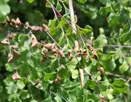 铁线蕨,常有叶枯病发生,初期可用波尔多液防治,严重时可用70%的甲基托布津1000-1500倍液防治,若有介壳虫危害植株,可用40%的氧化乐果1000倍液进行防治。