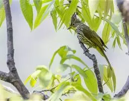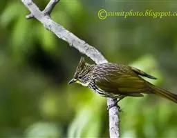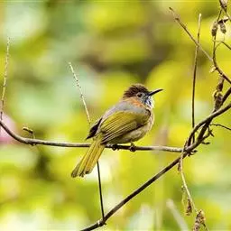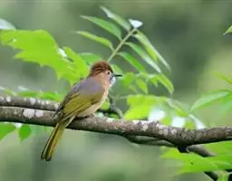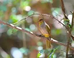 纹喉鹎:体长19厘米,是一种中等体型的偏绿色鹎。特征为头顶、脸颊、颏及喉均具黄色条纹。上体橄榄绿色。…