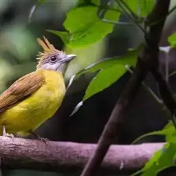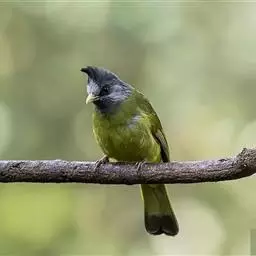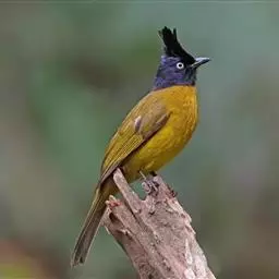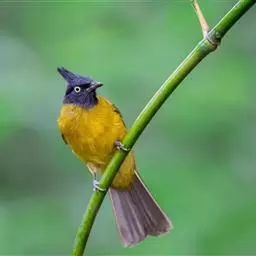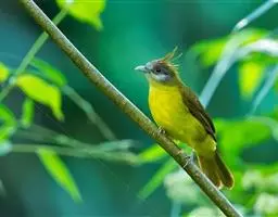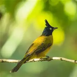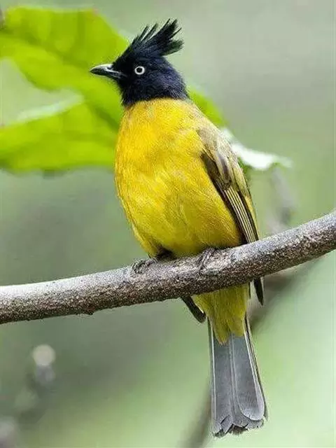 黑冠黄鹎:体长18-21厘米,是一种中等体型偏黄色鹎。整个头、颈、颏、喉黑色,头顶有显著直立的羽冠,…