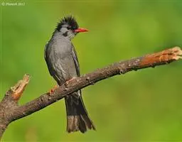 凤头雀嘴鹎:属小型鸟类,体长18-22厘米。嘴粗短、呈象牙色或乳黄色,前额和脸灰色,头顶黑色,…