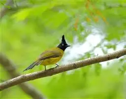 黑头鹎:体长17厘米。是一种中等体型的偏黄色鹎。特征为头辉黑、喉黑而眼蓝。上体黄橄榄色;两翼及尾偏黑,…