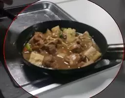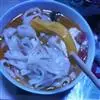 2、将锅烧热,加入少许油,将调味料1炒香,再将调味料2加入,转中火,要一直搅拌汤料,避免烧焦。煮沸后放入草虾、油豆腐片、鱼丸煮熟,再加入米粉同煮,熟后盛入碗中。