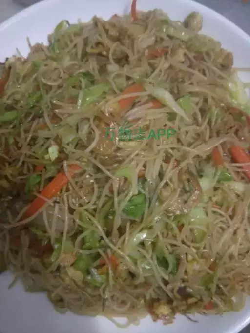 米粉400克、肉丝100克、绿豆芽200克、胡萝卜1根、洋葱半只、卷心菜半只、虾干50克。