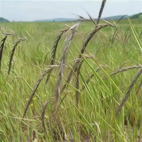 白羊草,拉丁学名:Bothriochloa ischaemum(L.)Keng.禾本科、孔颖草属多年生草本。秆丛生,直立或基部倾斜,节上无毛或具白色髯毛;叶鞘无毛,多密集于基部而相互跨覆,常短于节间;叶舌膜质,顶生者常缩短,先端渐尖,基部圆形,两面疏生疣基柔毛或下面无毛。脊上粗糙,先端钝或带膜质;中部以上具纤毛;脊上粗糙,边缘亦膜质;第一外稃长圆状披针形,先端尖,边缘上部疏生纤毛;第二外稃退化成线形,先端延伸成一膝曲扭转的芒,有柄小穗雄性;第一颖背部无毛,背部扁平,两侧内折,边缘具纤毛。花果期秋季。生于山坡草地和荒地。