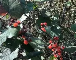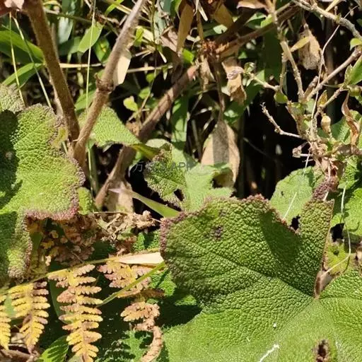 粗叶悬钩子 攀援灌木,高达5米。枝被黄灰色至锈色绒毛状长柔毛,有稀疏皮刺。单叶,近圆形或宽卵形,长6-16厘米,宽5-14厘米,顶端圆钝,稀急尖,基部心形,上面疏生长柔毛,并有囊泡状小突起,下面密被黄灰色至锈色绒毛,沿叶脉具长柔毛,边缘不规则3-7浅裂,裂片圆钝或急尖,有不整齐粗锯齿,基部有5出脉;叶柄长3-4.5厘米,被黄灰色至锈色绒毛状长柔毛,疏生小皮刺;托叶大,长约1-1.5厘米,羽状深裂或不规则的撕裂,裂片线形或线状披针形。花成顶生狭圆锥花序或近总状,也成腋生头状花束,稀为单生;总花,梗、花梗和花萼被浅黄色至锈色绒毛状长柔毛;花梗短,最长者不到1厘米;苞片大,羽状至掌状或梳齿状深裂,裂片线形至披针形,或裂片再次分裂;花直径1-1.6厘米;萼片宽卵形,有浅黄色至锈色绒毛和长柔毛,外萼片顶端及边缘掌状至羽状条裂,稀不分裂,内萼片常全缘而具短尖头;花瓣宽倒卵形或近圆形,白色,与萼片近等长;雄蕊多数,花丝宽扁,花药稍有长柔毛;雄蕊多数,子房无毛。果实近球形,直径达1.8厘米,肉质,红色;核有皱纹。花期7-9月,果期10-11月。