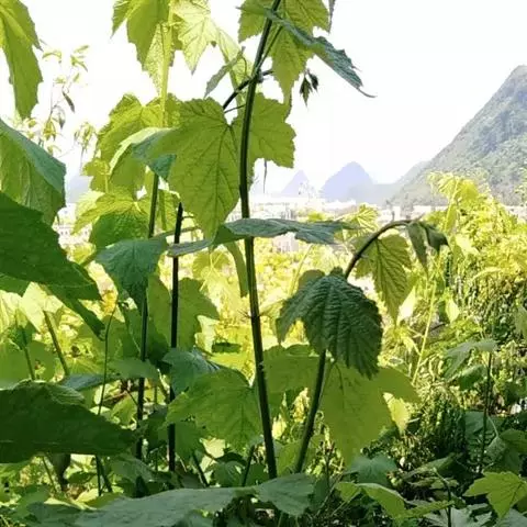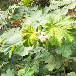 粗叶悬钩子(学名:Rubus alceaefolius Poir.)是蔷薇科,悬钩子属的落叶灌木,茎直立、具腺毛,叶互生,边缘锯齿,有叶柄;托叶与叶柄合生,不分裂,宿存,离生,较宽大,花两性,聚伞状花序、花萼;萼片直立或反折,果时宿存;花瓣稀缺,白色或红色;雄蕊多数,心皮多数,有时仅数枚,果实为由小核果集生于花托上而成聚合果,种子下垂,种皮膜质,花期4-5月,果期6-7月。