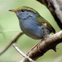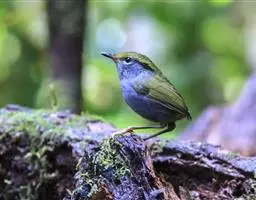 棕脸鹟莺:体长10厘米,是一种色彩亮丽而有特色的莺鸟。头栗色,具黑色侧冠纹。上体绿,腰黄色。下体白,…