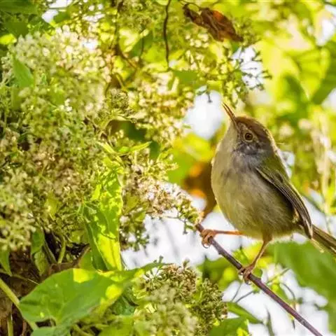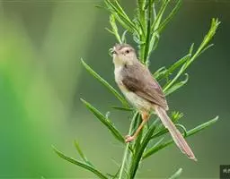 黑喉缝叶莺:体长11.5厘米,是一种小型的顶冠棕色、腹部白色的莺。尾甚长而常上翘,臀黄色,…