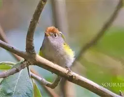 金冠地莺:形态与灰腹地莺相似,上体橄榄绿,前额至头顶渲染亮金黄色;下体几乎纯暗石板灰色,…