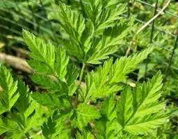 叶有柄,柄长7~30厘米,基部具宽鞘,叶片长圆状卵形至广三角形,3出式2回羽状分裂;裂片具柄,柄长2~7厘米;小裂片椭圆形至长披针形,长3.5~6.5厘米,宽0.4~2.5厘米,先端渐尖,基部渐狭。