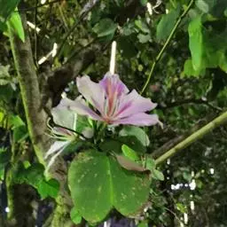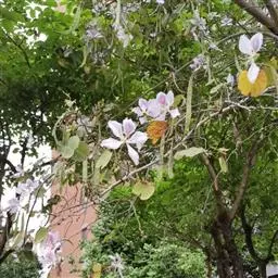 洋紫荆:落叶乔木;树皮暗褐色,近光滑;幼嫩部分常被灰色短柔毛;枝广展,硬而稍呈之字曲折,无毛。叶近…