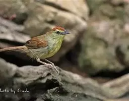 • 金头穗鹛小型鸟类,体长10~11厘米,是一种黄色小鸟。头顶金黄色有黑色纵纹,眼先黑色,…