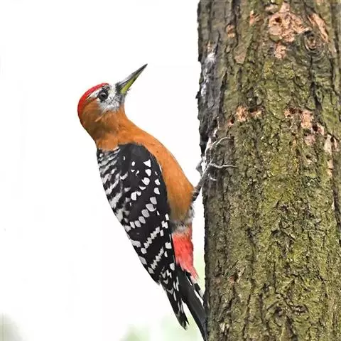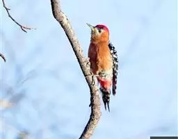 棕腹啄木鸟为啄木鸟科,啄木鸟属是中等体型的鸟类,体长约20厘米。头顶部具红色斑带。脚强健,有趾4个,…