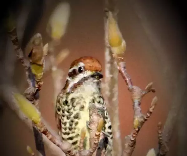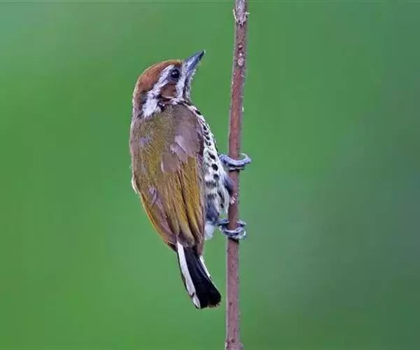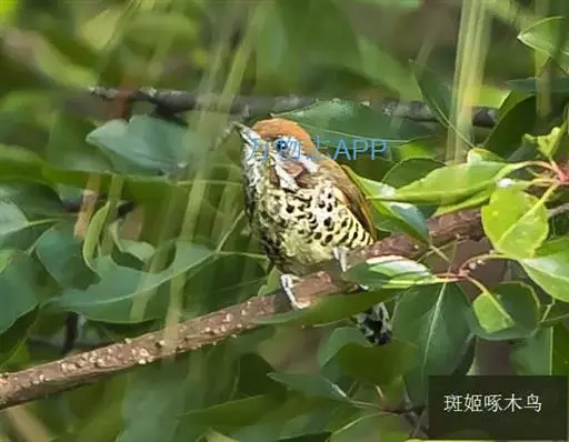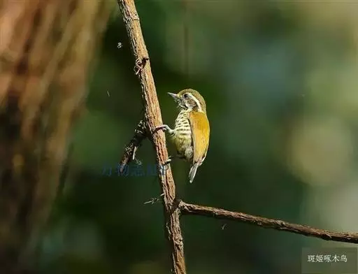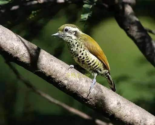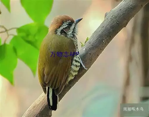 斑姬啄木鸟(学名:Picumnus innominatus),背至尾上覆羽橄榄绿色,两翅暗褐色,外缘沾黄绿色,翼缘近白色,翅上覆羽和内侧飞羽表面同背。尾羽黑色,中央一对尾羽内侧白色或黄白色,外侧3对尾羽有宽阔的斜行白色或淡黄白色次端斑。虹膜褐色或红褐色,嘴和脚铅褐色或灰黑色。常单独活动,多在地上或树枝上觅食,较少像其它啄木鸟那样在树干攀缘。繁殖期为4-7月。营巢于树洞中,每窝产卵3-4枚。