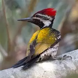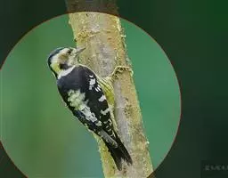 三趾啄木鸟,是啄木鸟科、啄木鸟属的小型鸟类,体长20-23厘米,雄鸟头顶金黄色,雌鸟黑色而具白色斑点。…
