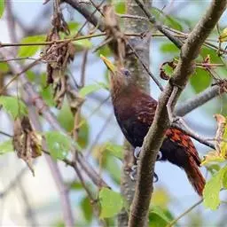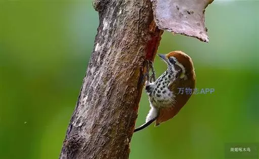 栗啄木鸟:是一种红褐色啄木鸟,体长21厘米。雄性成鸟整个头棕色,…