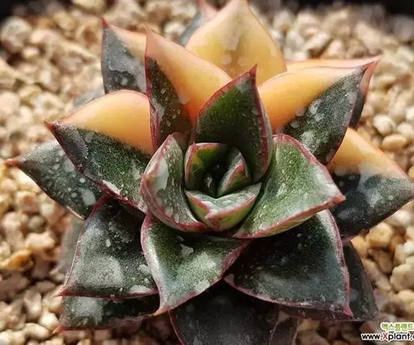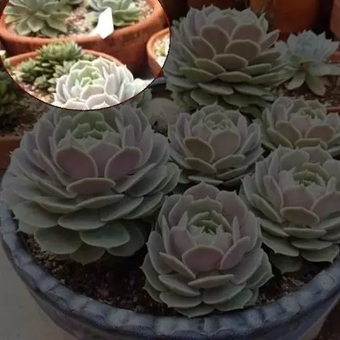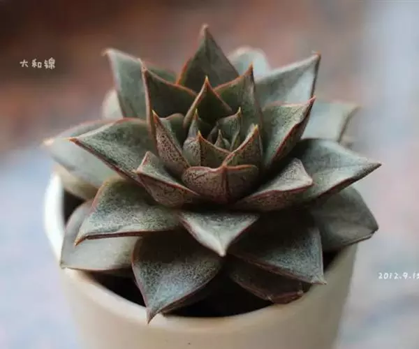 大和锦是景天科拟石莲花属的多肉植物。肉质叶排成紧密的莲座状,广卵形至散三角卵形,背面突起呈龙骨状,…