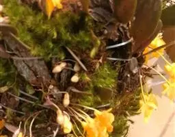 方法一 准备好兰盆及植料后,将兰株倒拿(根在上,叶在下)放于水龙头下以慢水冲洗,但水压切忌过强,以免伤兰根及叶子。用拇指和食指抓住兰头,小指抵住盆缘,用竹筷将根固定,当放入盆内时,尽量不要让根接触到盆壁。将豆粒大的混合石砾倒入盆底至三分之一处。然后倒入中粒植料至五分之四处,填实和尽量不要留下空间。将竹筷拔出,并摇实盆中植料。填实植料后,再用大粒植料埴入至距盆缘1.5厘米处。最后再倒入豆粒大植料,以将假鳞茎全部埋入土中为度,然后充分摇实。用压土工具轻压植料,并将表面弄平。种植完毕后,植料在盆中以中央稍高为好。