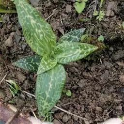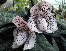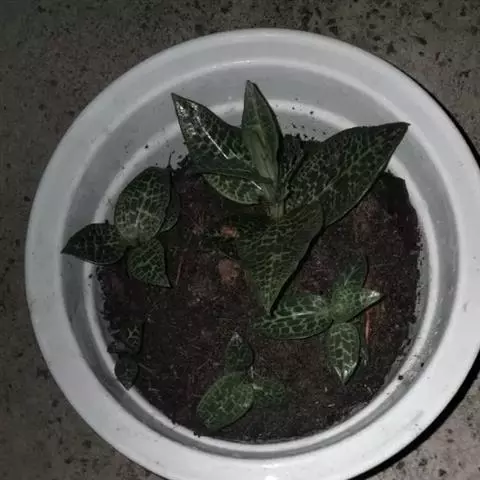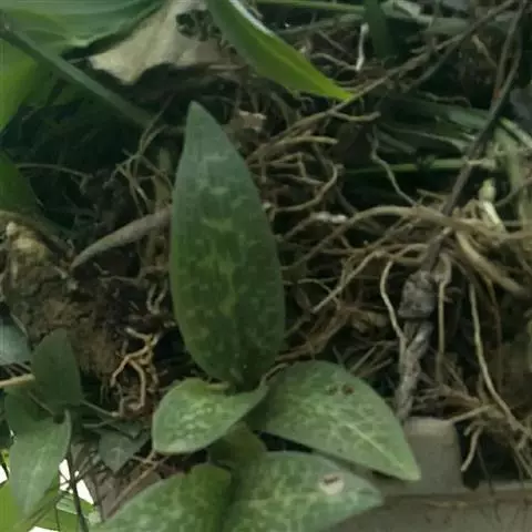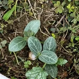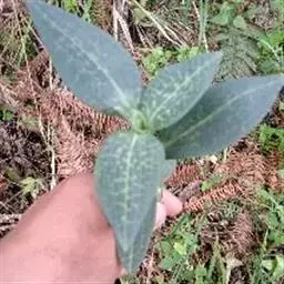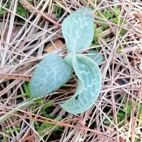 大花斑叶兰(学名:Goodyera biflora (Lindl.) Hook. f.):植株高5-15厘米。根状茎伸长,茎状,匍匐,具节。茎直立,绿色,具4-5枚叶。叶片卵形或椭圆形,长2-4厘米,宽1-2.5厘米,上面绿色,背面淡绿色,有时带紫红色,具柄。总状花序通常具2朵花,常偏向一侧;花大,长管状,白色或带粉红色,花瓣白色,无毛,稍斜菱状线形,长(2-)2.5厘米,宽3-4毫米,先端急尖;唇瓣白色,线状披针形。花期2-7月。