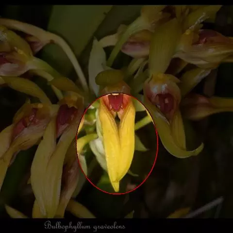 花瓣白色,无毛,稍斜菱状线形,长(2-)2.5厘米,宽3-4毫米,先端急尖;唇瓣白色,线状披针形,长1.8-2厘米,基部凹陷呈囊状,内面具多数腺毛,前部伸长,舌状,长为囊长的2倍,先端近急尖且向下卷曲;蕊柱短;花药三角状披针形,长1-1.2厘米;花粉团倒披针形,长1.2-1.6厘米;蕊喙细长,长1-1.2厘米,叉状2裂;柱头1个,位于蕊喙下方。花期2-7月。